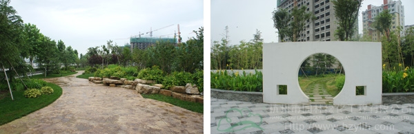 據(jù)高經(jīng)理介紹,該工程是壽光市2009年的一項重點市政工程,本著綠色、生態(tài)、自然的原則,在保留部分大樹的基礎(chǔ)上,對道路景觀進行了全新改造。工程由北至南,依次設(shè)置下沉廣場、北廣場、南廣場、方形廣場等多個景觀節(jié)點,每個節(jié)點的植物配置、地面鋪裝等都各不相同,形成一個個獨具特色的小場景;同時,又通過錯落有致的植物搭配、蜿蜒曲折的游憩步道,將整個工程貫穿起來,使得整體的景觀效果統(tǒng)一中富于變化,開闊中層次分明。