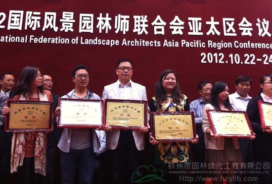 2012年度中國(guó)風(fēng)景園林學(xué)會(huì)“優(yōu)秀園林工程獎(jiǎng)”共頒出獲獎(jiǎng)項(xiàng)目195項(xiàng),其中,“優(yōu)秀園林綠化工程獎(jiǎng)”185項(xiàng),“優(yōu)秀園林古建工程獎(jiǎng)”10項(xiàng)。杭州市園林綠化工程有限公司承建的中國(guó)鐵建?國(guó)際城(杭州)示范區(qū)園林綠化工程和深圳市國(guó)道205深圳段改建工程景觀綠化工程G5402標(biāo)段雙雙榮獲金獎(jiǎng)。
