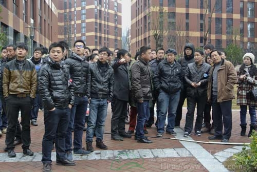 每到一個(gè)工程現(xiàn)場,工地負(fù)責(zé)人都先介紹工程的施工情況,然后,帶領(lǐng)大家進(jìn)行參觀,并隨時(shí)解答觀摩組一行提出的各種問題。每項(xiàng)工程觀摩結(jié)束的時(shí)候,三位專家都會(huì)集中點(diǎn)評,從苗木種植、植物搭配、水景營造、地形整理等各方面指出工程施工中存在的優(yōu)勢與不足,并提出需要改進(jìn)的地方。