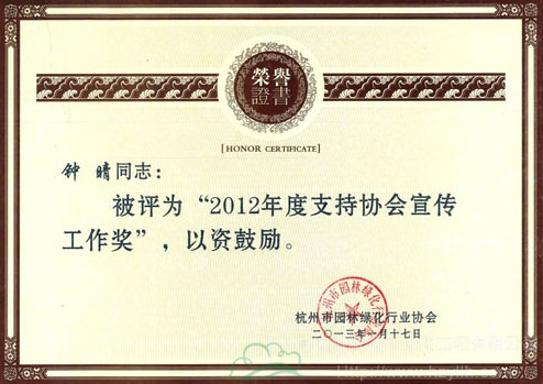 鐘晴、梁夕雯兩位同志榮獲杭州市園林綠化行業(yè)協(xié)會(huì)2012年度宣傳工作先進(jìn)個(gè)人稱號