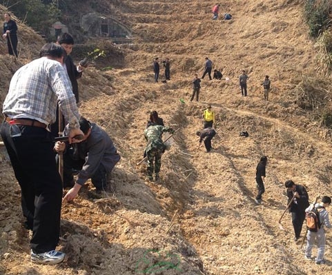 此次種植的是油茶小苗,為了提高樹苗的成活率,專門請(qǐng)來(lái)當(dāng)?shù)剞r(nóng)民,詳細(xì)講解種植的步驟、間距等種植要點(diǎn)及注意事項(xiàng)。隨后,大家兩人一組,興致高昂地開始了種樹,挖穴、種苗、填土……經(jīng)過(guò)一個(gè)小時(shí)的緊張勞動(dòng),500多株油茶樹就種好了。