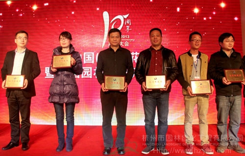 大會揭曉并頒發(fā)了“突出貢獻(xiàn)獎”、“貢獻(xiàn)獎”、“最佳合作伙伴獎”、“2013年優(yōu)秀參展獎”、“2013年產(chǎn)品金獎”等多個獎項,以此表彰一批多年來為中國(蕭山)花木節(jié)的成功舉辦做出積極貢獻(xiàn)的個人和單位。其中,杭州市園林綠化工程有限公司榮獲“最佳合作伙伴獎”、“2013年優(yōu)秀參展獎”,參展的產(chǎn)品“紅寶石”紫薇和“火煉金丹”桂花榮獲“2013年優(yōu)秀產(chǎn)品獎”,總經(jīng)理張炎良上臺領(lǐng)取了獎牌。