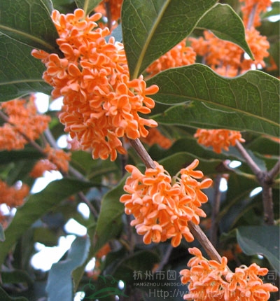 “火煉金丹”桂花:常綠小喬木,高3-5米,冠形、葉型似金球桂,觀賞性狀良好;零星分布于江蘇、浙江、江西一帶,適應(yīng)性廣泛。本品種花冠裂片邊緣金黃色,其他部分橙黃色,為桂中珍品,用于園林綠化點綴,效果極佳。