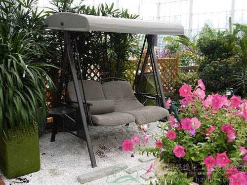 蕩秋千,是兒時記憶中最快樂的玩樂方式之一,在那一蕩一蕩的秋千中,曾留下了多少歡聲笑語和快樂的童年時光。穿過為園藝愛好者設計的庭院景觀,眼前的這處小景,最引人注目的就是這架做工精美又不失穩(wěn)重的布藝秋千,輕易地讓人聯(lián)想到一家人在此玩樂的溫馨畫面。這處現(xiàn)代庭院風格的小景,線條簡約,顏色鮮明,鋪設木平臺以烘托溫馨的生活氣息,鐵藝的室外桌椅以及精致的裝飾用品,無不顯示出對美好生活的享受與追求。這種類型的小景不受庭院風格限制,庭院的主人可以根據(jù)自己的愛好,營造出獨屬于自家的景觀特色。