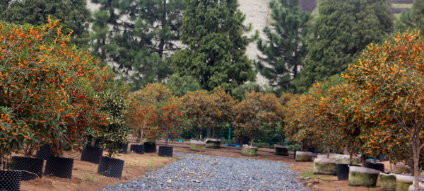桂花是基地的主導(dǎo)苗木品種,公司依托雄厚的專業(yè)力量和研發(fā)能力,運(yùn)用現(xiàn)代化的繁育設(shè)施和技術(shù),生產(chǎn)各類桂花觀賞盆栽苗、品種容器苗、工程苗、地被容器苗和林木容器苗等,桂花研發(fā)和產(chǎn)業(yè)化程度達(dá)到國(guó)內(nèi)外領(lǐng)先水平,是“中國(guó)桂花品種繁育中心”,承擔(dān)著國(guó)內(nèi)外專家的桂花課題研究、交流考察、新品種研發(fā)任務(wù);建有中國(guó)第一個(gè)桂花品種資源庫(kù),收集桂花品種100多個(gè),是國(guó)際上收集桂花品種最多最全的種質(zhì)資源庫(kù)之一;是國(guó)際桂花登錄組織認(rèn)可的桂花品種國(guó)際測(cè)試中心;自主研發(fā)了“杭州黃”等4個(gè)桂花新品種并通過(guò)省級(jí)審定,擁有自主知識(shí)產(chǎn)權(quán);承擔(dān)的科研項(xiàng)目“桂花品種基因(種質(zhì)資源)庫(kù)建設(shè)與優(yōu)良品種選育推廣”榮獲“2007年度杭州市科技進(jìn)步一等獎(jiǎng)”等,在桂花的科研方面,可謂是碩果累累。