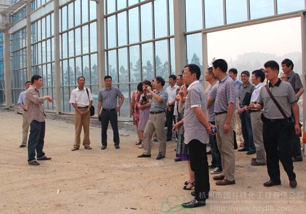 會(huì)議開始之前,在“以興林富民為重點(diǎn),以項(xiàng)目建設(shè)為抓手,加快推進(jìn)林業(yè)產(chǎn)業(yè)、科技推廣、林木種苗事業(yè)發(fā)展”指導(dǎo)思想的指引下,楊文鐘副局長和與會(huì)代表一起參觀考察了杭州市園林綠化工程有限公司的“園藝設(shè)施農(nóng)業(yè)示范園——青山湖?花園中心”項(xiàng)目現(xiàn)場,詳細(xì)了解了智能玻璃溫室、鋼架蔭棚、容器苗區(qū)等主要生產(chǎn)設(shè)施設(shè)備和附屬配套設(shè)施的建設(shè)情況。公司總經(jīng)理張炎良、副總經(jīng)理丁旭升、研發(fā)中心經(jīng)理沈柏春陪同參觀。